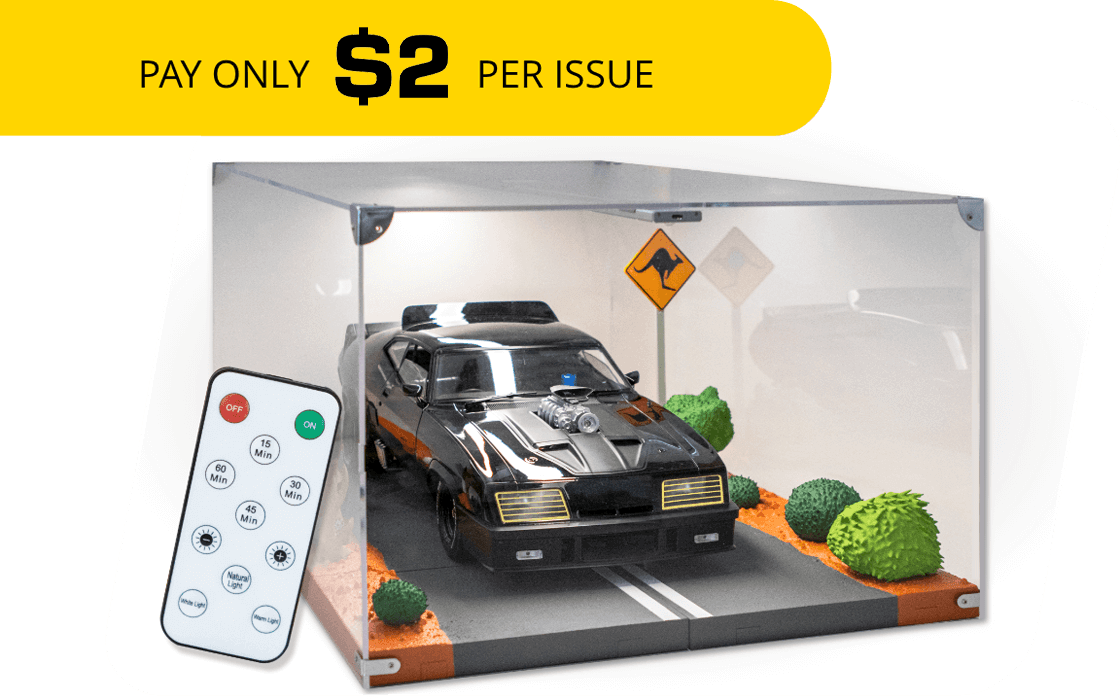 With this collection construct the high-quality die-cast model, the 1973 Ford Falcon GT XB classic. The Australian post-apocalyptic car. Each week follow expert step-by-step guides, showing you the tips, tricks and techniques to build this powerful looking customised car. The Ford Falcon features realistic detailing, moving wheels, opening doors, and the prominent through-the-hood supercharger. It comes with lighting and authentic sounds, coming from the eight rocker exhausts and the whine of the supercharger.